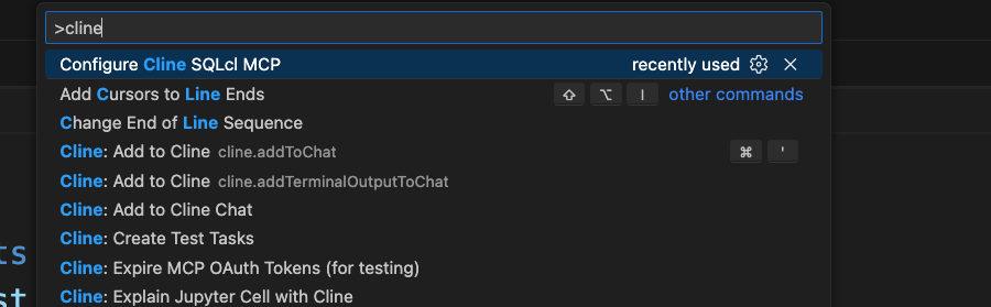 Maybe you’re using Claude’s extension for VS Code? It (like all other Agents) use json config files for managing their MCP Servers. Simply call the ‘Cline’ command, and copy/paste the JSON entry for SQLcl, and paste it into Claude’s.