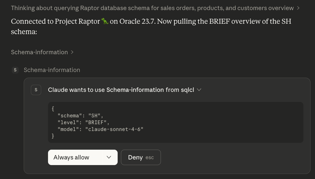 - I’m using our MCP Server to work with my Oracle AI Database…