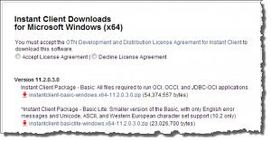 In expired7 November 14, 2012 1 Min Read Oracle Instant Client downloads Author thatjeffsmith I'm a Distinguished Product Manager at Oracle. My mission is to help you and your company be more efficient with our database tools. Website Related Posts Write A Comment Cancel Reply Save my name, email, and website in this browser for the next time I comment. you MUST enable javascript to be able to comment Δ