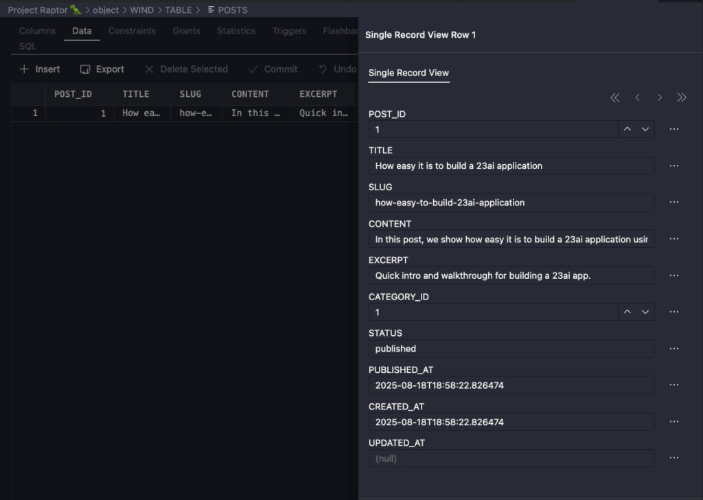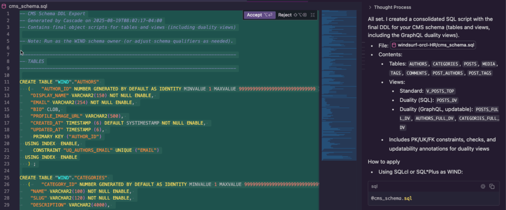 The model has apparently already been trained on 23ai SQL syntaxes like “CREATE TABLE IF NOT EXISTS…,” – GREAT.