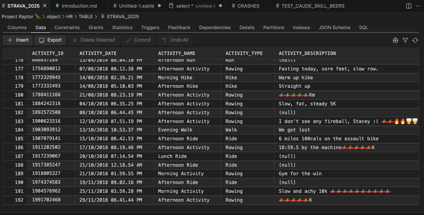 }Here’s my Strava import, handled in only 2 SQLcl MCP tool calls, one to do the load, and another to check row counts.